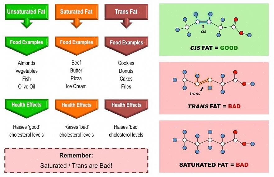 ישנם שני סוגים שונים של שומנים: רוויים ולא רוויים. לגבי התצורה המרחבית של שומנים, אנו יכולים לסווג אותם לשתי קבוצות: חומצות שומן cis וחומצות שומן טראנס. זה האחרון יכול להשפיע לרעה על הבריאות, ולא לשומנים רוויים ככאלה. להלן, נסביר לך זאת.