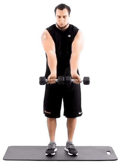 - עמדת מוצא. הניחו את כפות הרגליים ברוחב הכתפיים, כופפו מעט את הברכיים והירכיים והביטו ישר קדימה. עם הידיים שלך מושטות, החזק משקולת עם כל זרוע. כפות הידיים שלך צריכות להיות פונות פנימה.