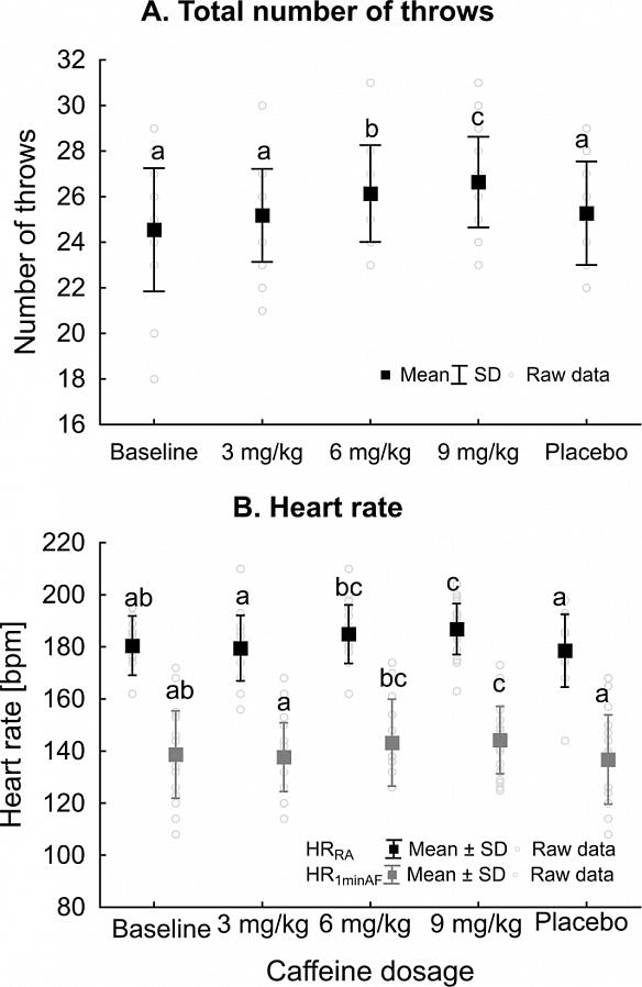 מינוני הקפאין לספורטאים נעים בין 1.5 ל-4.5 מ"ג/קילוגרם ממשקל הגוף. כמו כן, הזמן שאתה צריך לקחת את זה משתנה בהתאם לסוג הקפאין שאתה לוקח.
