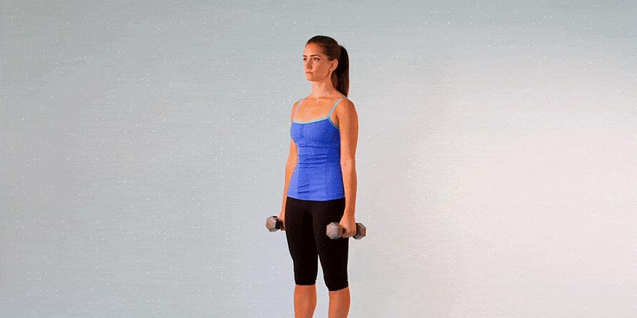 כדי להתחיל, תפסו זוג משקולות ועמדו עם רגליים ישרות והידיים הצידה. הזיזו את כפות הרגליים קצת יותר זו לזו מאשר ברוחב הכתפיים תוך שמירה על כפות הידיים כלפי הגוף.