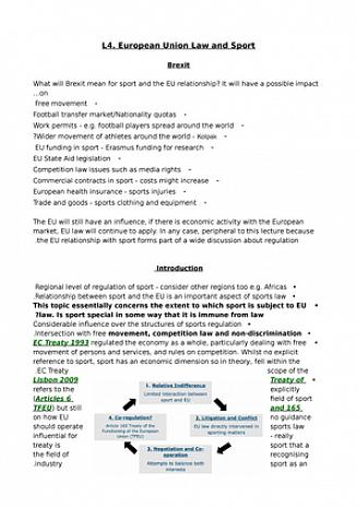 הסדרת הספורט באיחוד האירופי (האיחוד האירופי) הונחה על הסף עד כניסת חוזה ליסבון לתוקף. זה היה ב-2009. החתימה והיישום שלה הביאו את האיחוד האירופי למצב של מיומנות ספציפית בכל הקשור לספורט לראשונה בתולדותיו.
