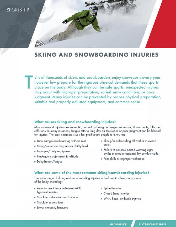 הדרך הטובה ביותר להימנע מפציעות בזמן סקי היא על ידי סיוע מקצועי בהישג יד. אם זה לא אפשרי לפחות קח את העצה ממישהו שהוא גולש סקי מנוסה. חשוב גם ללבוש בגדים חמים ולהתחמם כמו שצריך לפני שמתחילים. אחרי הכל, אין ספורט טוב יותר מספורט בטוח!