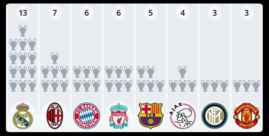 קבוצות עם הכי הרבה תארים בליגת האלופות