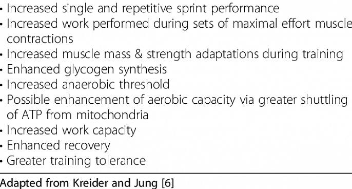 עזר ארגוגני זה אידיאלי עבור ספורט אנאירובי או נפץ. זה משפר את היכולת האנאירובית הודות לתפקודו כמאגר תוך תאי. המשמעות היא שהוא שומר על pH אופטימלי ומפחית את החומציות הנגרמת על ידי התרכובות שנוצרות בתגובות השגת אנרגיה.