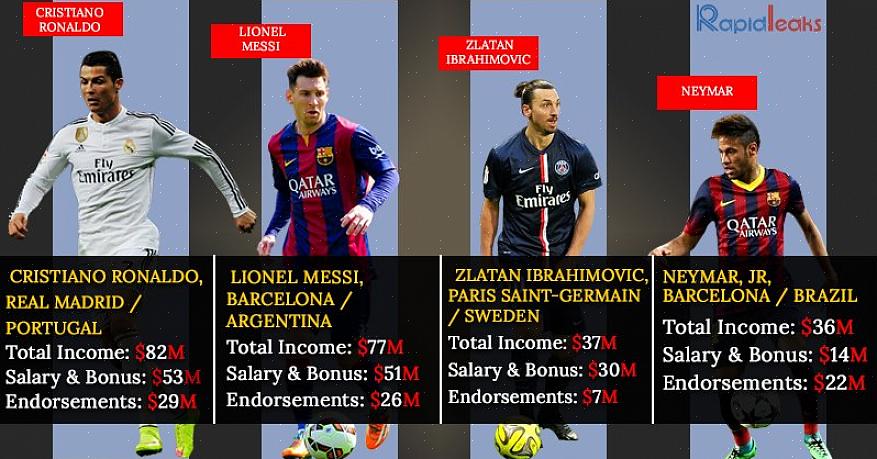 מדי שנה, מגזין פורבס מפרסם רשימה של הספורטאים בעלי ההכנסה הגבוהה ביותר. עבור חובבי ספורט רבים, דבר אחד שמושך את תשומת לבם הוא שבחמשת המקומות הראשונים יש שלושה שחקני כדורגל! באמצע החמישייה, אנו מוצאים כמה משחקני הכדורגל המשתלמים ביותר בהיסטוריה. אז מי הם?
