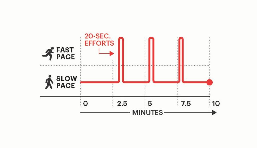 בשלב זה, הגדל את זמן הדיווש, בהתנגדות גבוהה, ל-20 שניות במהירות מלאה. לאחר 20 השניות הללו, פדלו בהתנגדות נמוכה למשך דקה ו-40 שניות. חזור על מחזור זה 5 פעמים נוספות. הספרינט האחרון של 20 שניות יתחיל בסימן 20 הדקות. זה יצטבר לסך של 6 סבבים מלאים של 20 שניות של עבודה.