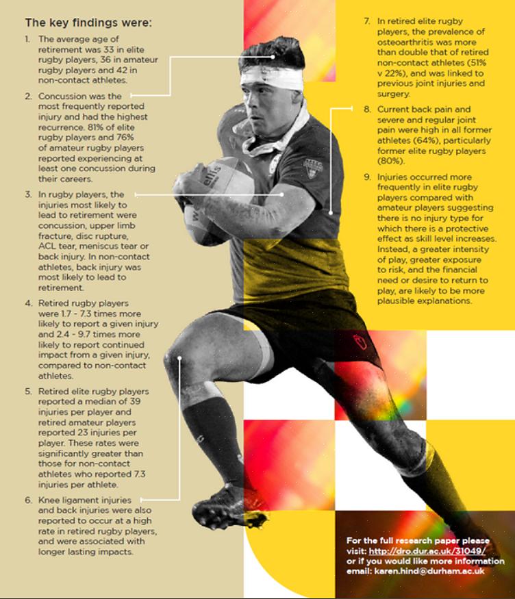 לרוגבי יש שיעור פציעות של 17 על כל אלף שעות משחק. זהו מספר גבוה, הגיוני בהתחשב במאפייני הספורט.
