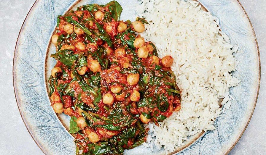 חצילים, עגבניות ותרד קארי צמחוני