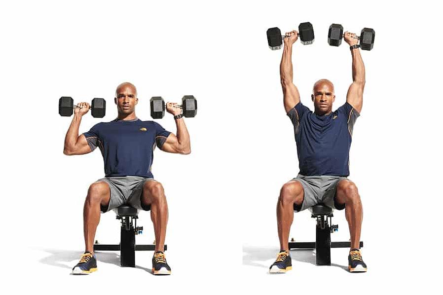 הרם את המשקולות שלך עד הכתפיים, כשכפות הידיים פונות קדימה. הושיטו את הידיים ישר מעל הכתפיים והשאירו את הגב ישר. הורד את המשקולות לאט עד שהם מגיעים שוב לגובה הכתפיים שלך כדי לסיים חזרה.