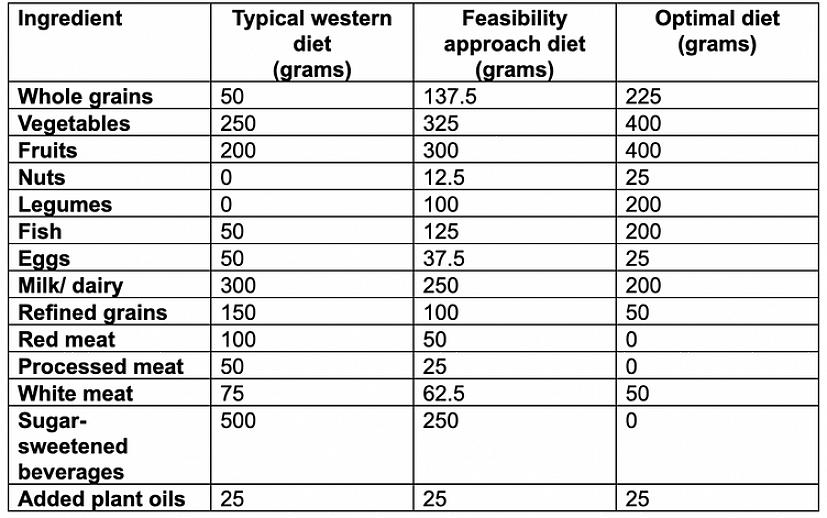 תזונה בריאה חייבת להיות מגוונת, מאוזנת ומזינה. זה חייב לכלול מזונות דלים בשומנים רוויים, כולסטרול ונתרן, כמו גם אחרים המספקים חומרים מזינים, ויטמינים, מינרלים, חומצות שומן חיוניות וסיבים.