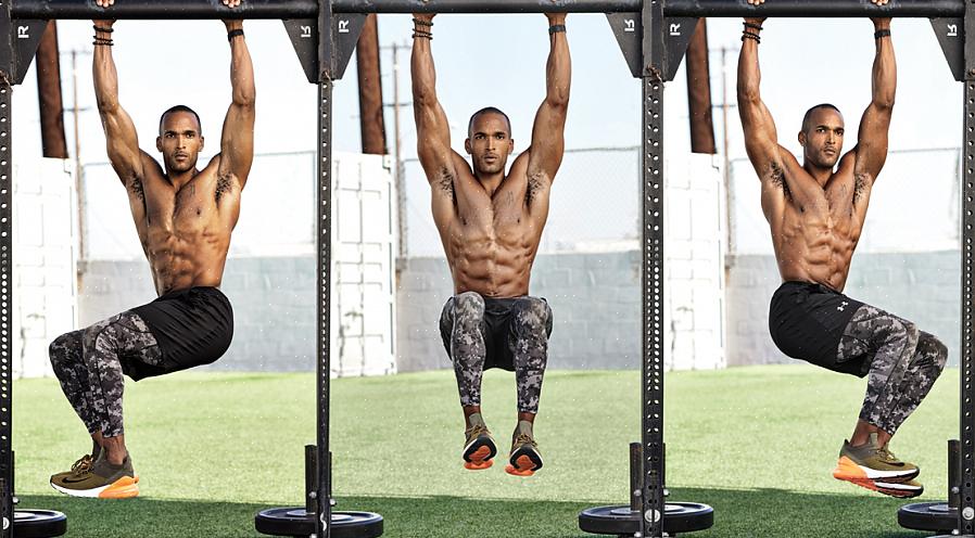 עבור התרגיל הזה, תצטרך מוט תלוי אופקית מעל הראש שלך. תפוס את המוט בשתי הידיים ומתח את הידיים. הצלב את הרגליים והרם את הברכיים אל החזה. במצב זה, סובב אותם ימינה. חזור למרכז והאריך שוב את הרגליים. עשה את אותו הדבר עבור הצד השמאלי.