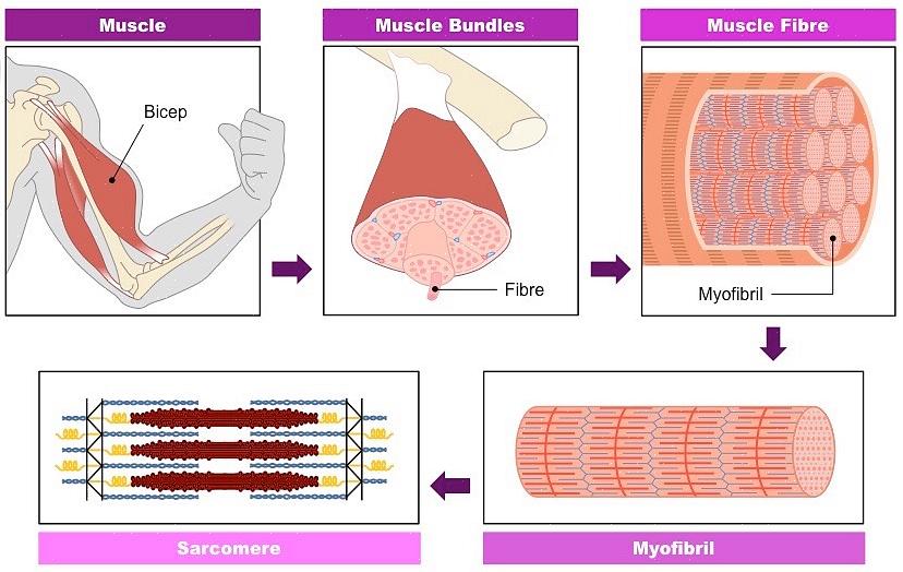 אותו הדבר קורה עם השרירים שלנו. אנו רואים שריר מכוסה בעור ואנחנו חושבים עליו כעל בלוק שמתכווץ ונרגע. עם זאת, לכל שריר יש סיבי שריר, ויש להם תפקידים שונים.
