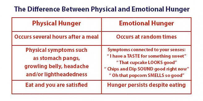 רעב אמיתי מתבטא בתחושת ריקנות או כאבי בטן. מצד שני, רעב רגשי חולק רבים מהסימפטומים של מתח. אלה כוללים עלייה בקצב הלב, תחושת קוצר נשימה או הזעה חזקה יותר של היד.