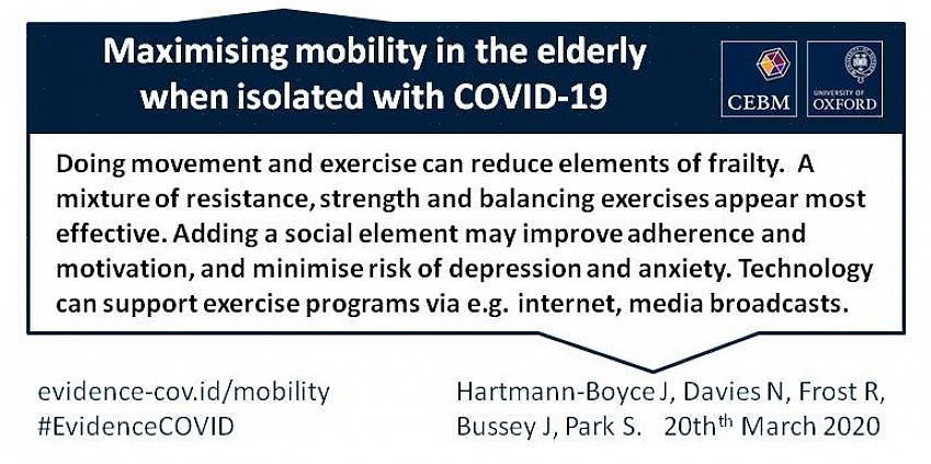 אחוז גבוה מהקשישים לא מבצעים פעילות גופנית, בין אם בגלל בורות או עצלות. המשימה של מאמנים, מטפלים או קרובי משפחה האחראים היא לעודד פעילות גופנית.