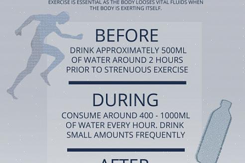 - שתו לפחות שתי כוסות מים כמה דקות לפני תחילת האימון. אתה צריך גם לשתות מים לאחר סיום האימון כדי לעזור לאזן את הגוף שלך.